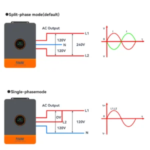- Capacidad Split Phase: Ideal para sistemas que requieren salidas simultáneas de 120V y 240V.